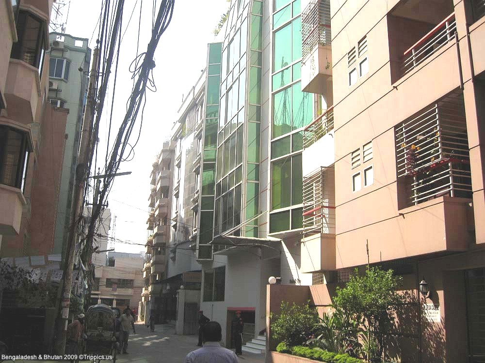 3 The first night into Dhaka, Bangladesh was a terror. No taxis at the airport when we arrived at 2 a.m., but we did find a kid with a busted out windshield and broken drivers seat who said he could find our hotel. It took him over an hour through road blocks with heavily armed militia and soldiers to some very dark streets and dangerous looking armed private guards on every corner who were not helpful. That said, we finally found the hotel, got to sleep, and woke up the next morning to find we were on this very nice little street in a quaint hotel. What a relief!