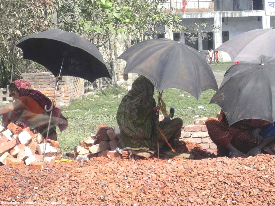 14 This morning we start our first adventure on the tour which will take us to the Buriganga River. On the way we pass these workers making small rocks out of big rocks for road construction.