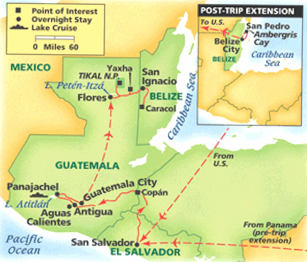 This trip covers El Salvador, Honduras, Guatemala and Belize - ENJOY.