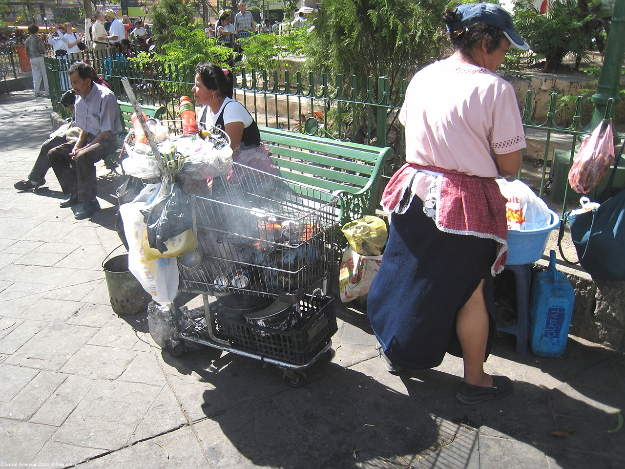 15 In the park there is much to see including this barbecue in a shopping cart. Not so unusual in San Salvador.