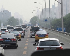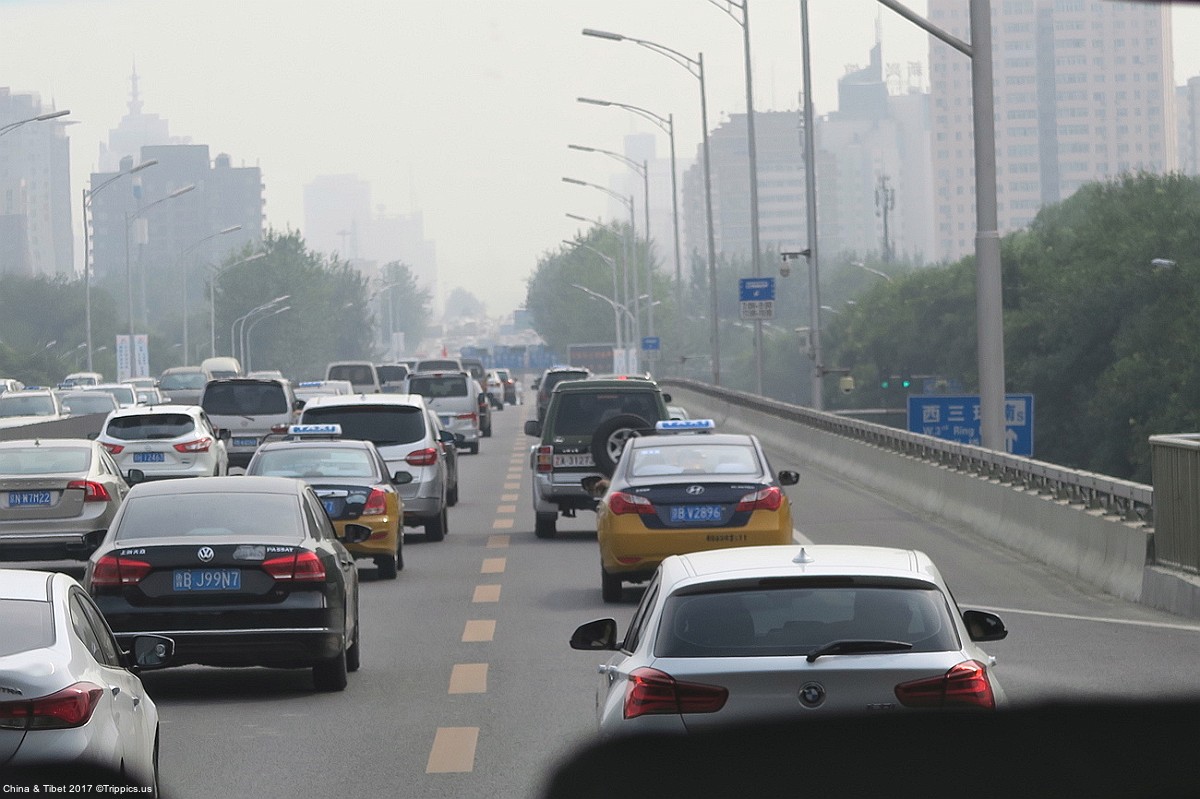 15 Re entering Beijing on our way to the Temple of Heaven, nobody could ever miss the smog.
