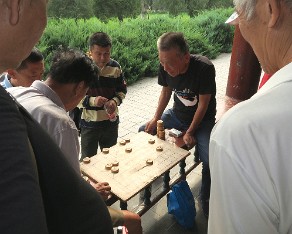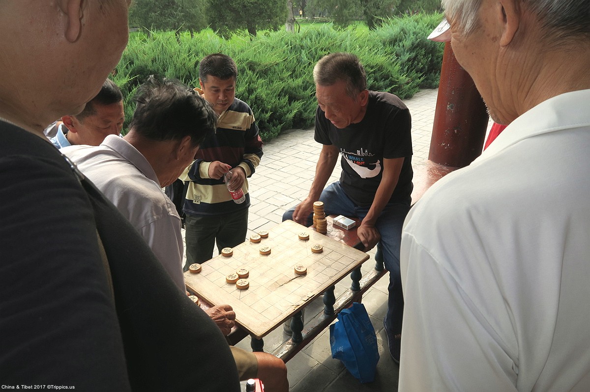 18 We had a very small group, did not need or want hats. Walking through the gardens on our way to the Temple of Heaven folks love to play games, smoke and gamble.