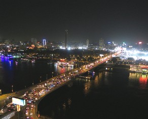 3 Cairo is a 24 hour city with plenty of traffic. The view from our room is magnificent. Party boats on the Nile and one of the numerous bridges over the river.
