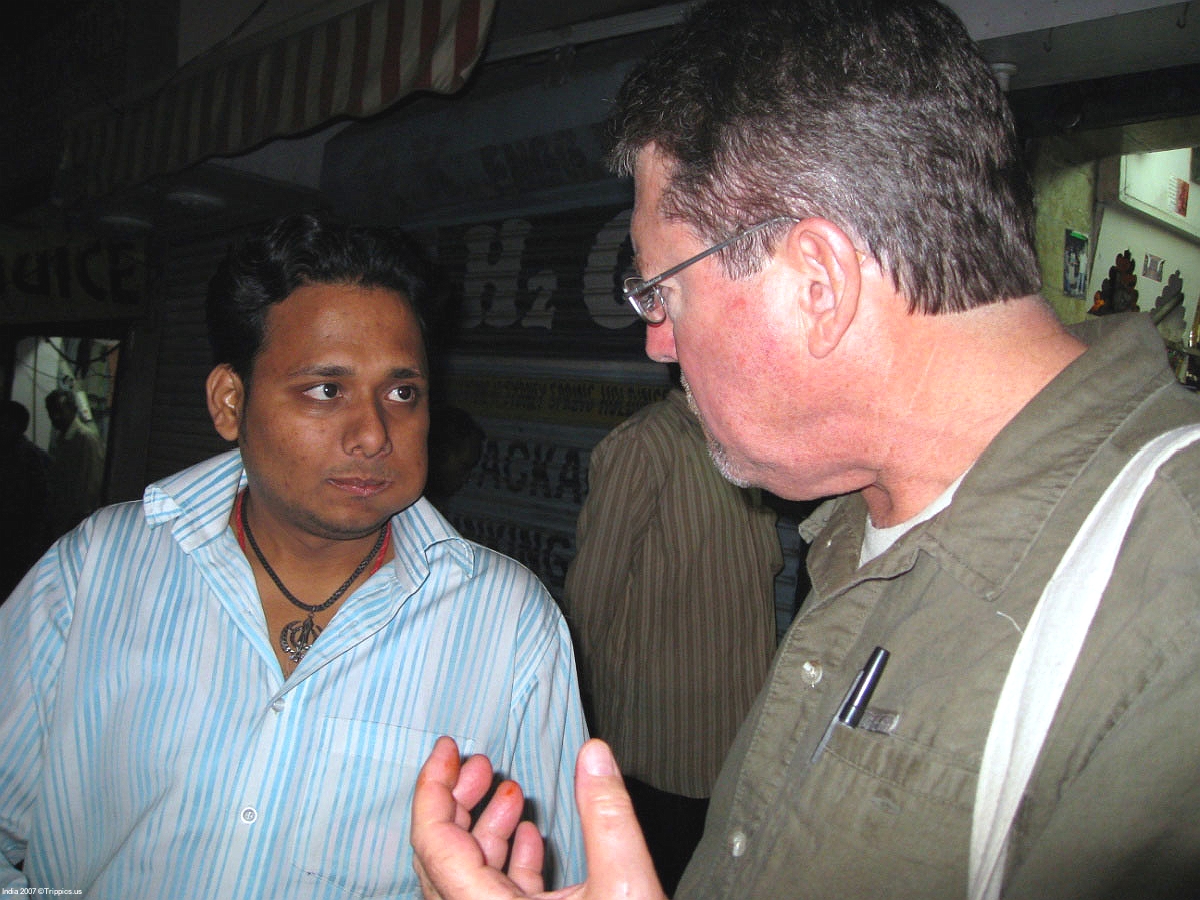 8 After chewing the paan (betel nut) you leave a wad between your cheek and gum for the stimulating effect. I try and talk with one of the patrons with a wad of pan in my mouth.