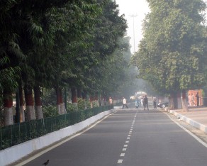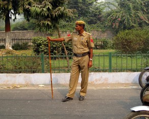 11 Next we head off to see Chandi Chowk, Ghandi's burial site. But the streets have been shut down due to VIP's visiting the area. Police cordon off the street.