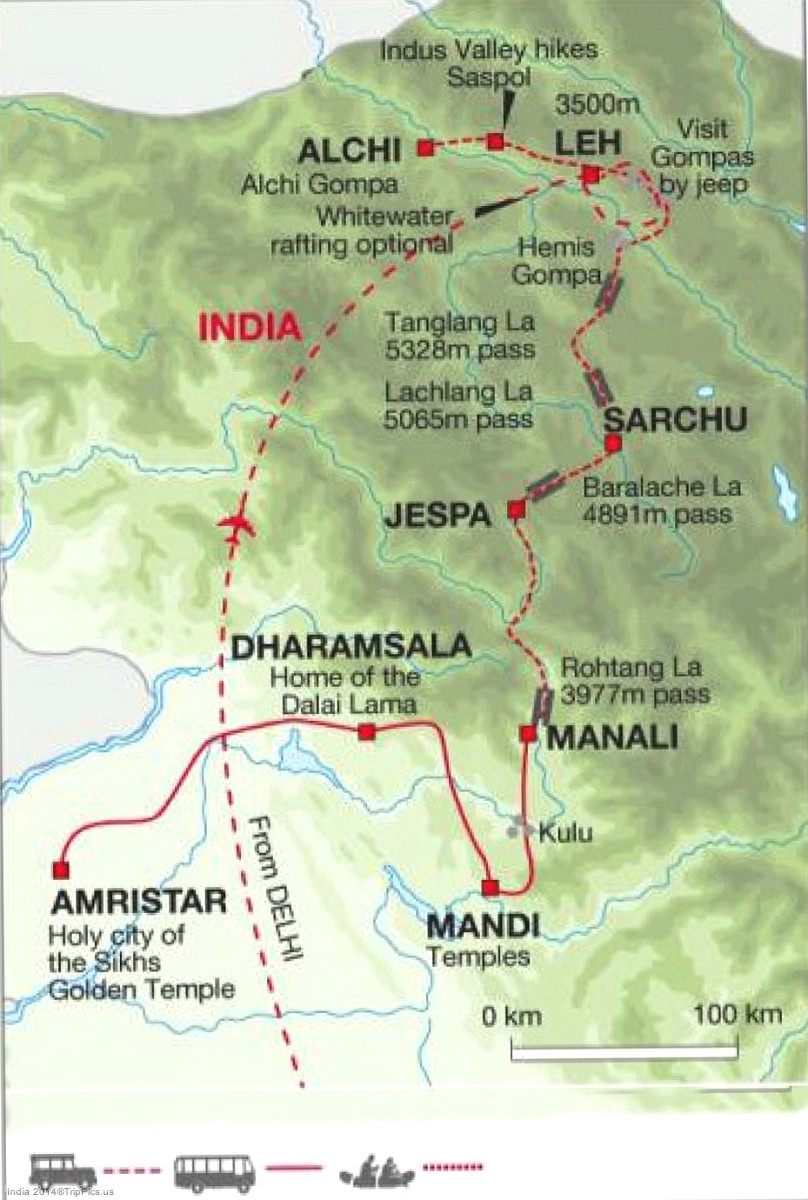 This trip was inspired by Michael Palens book and 6 hour BBC series “Himalaya”. After acclimating in Leh and Alchi for 5 days we began our journey from Leh to Manali and pass through 4 of the highest passes in the world with the highest being 17,480 feet at Tanglang La. After our stay in Amristar we will be off to Dal Lake and Kashmir for an additional 3 night stay.