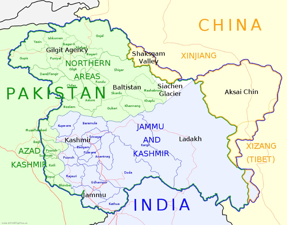 2 This map may help in visualizing where the Jammu and Kashmir region is in India. Some of the areas are disputed by Pakistan and China.