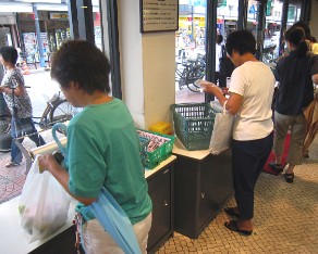 12 People here do their own grocery bagging after check out. The checkers see me and bag it for me - Thank you!