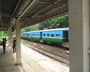 8 During our walk around town we go below an overpass in order to get a closer look at the Myanmar trains.