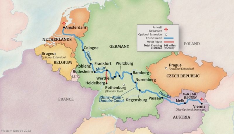 1 Following Covid lockdowns, we were able to enjoy this riverboat trip through Western Europe, Vienna to Amsterdam.
